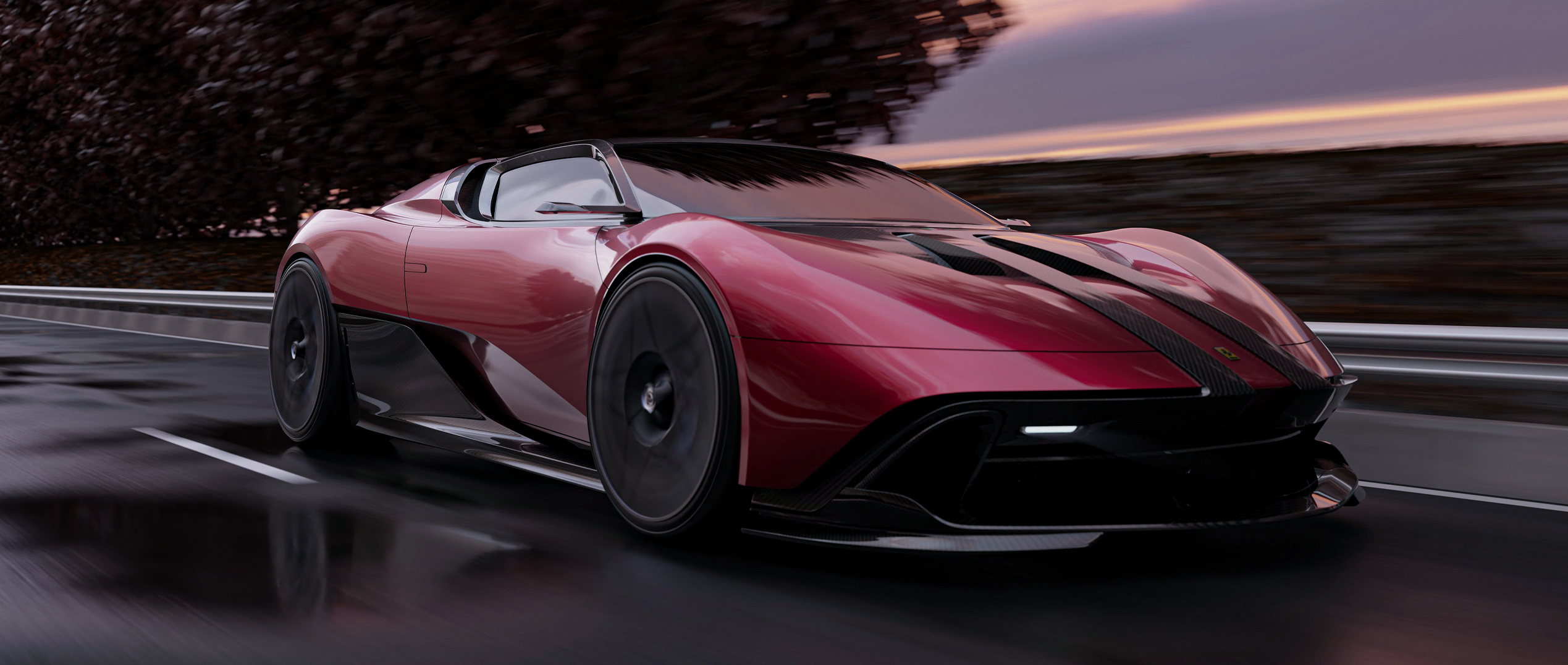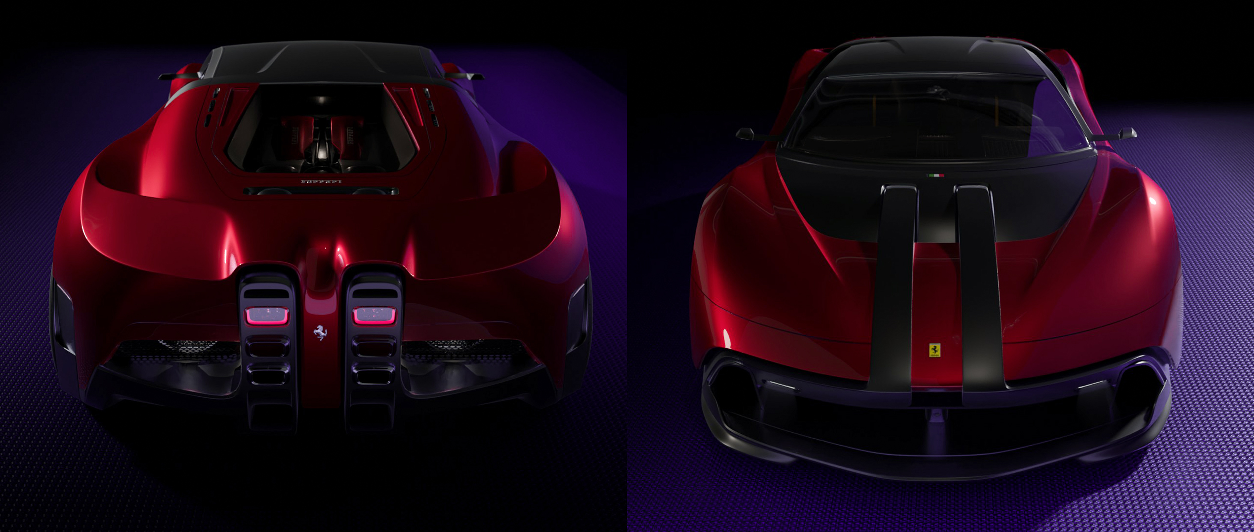 This concept explores a future Ferrari that stays unapologetically ICE-driven, but pushes the body into an extreme streamlined, aero-first expression. The main reference was Luigi Colani’s Ferrari experiments and classic Ferrari proportions—long, sculpted volumes with minimal graphic noise. That soft, continuous surfacing is contrasted with a second layer of inspiration: LEGO Technic parts, treated as a design logic for functional perforations, modular cut-outs, and structural “component language.” The third influence comes from fighter aircraft, visible in the canopy-like greenhouse, intake-driven packaging, and jet-inspired rear architecture. The result is a hybrid character: organic speed-form + engineered, mechanical detailing—a Ferrari that feels both fluid and constructed.