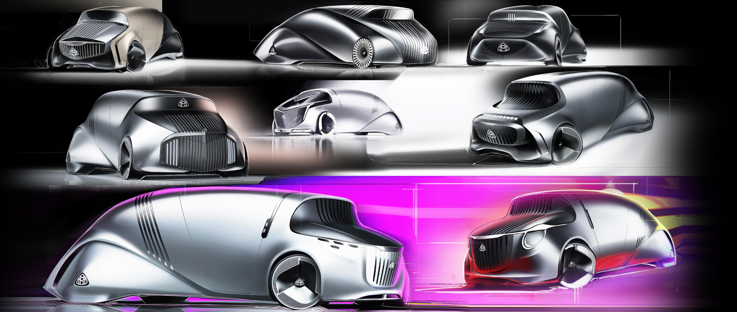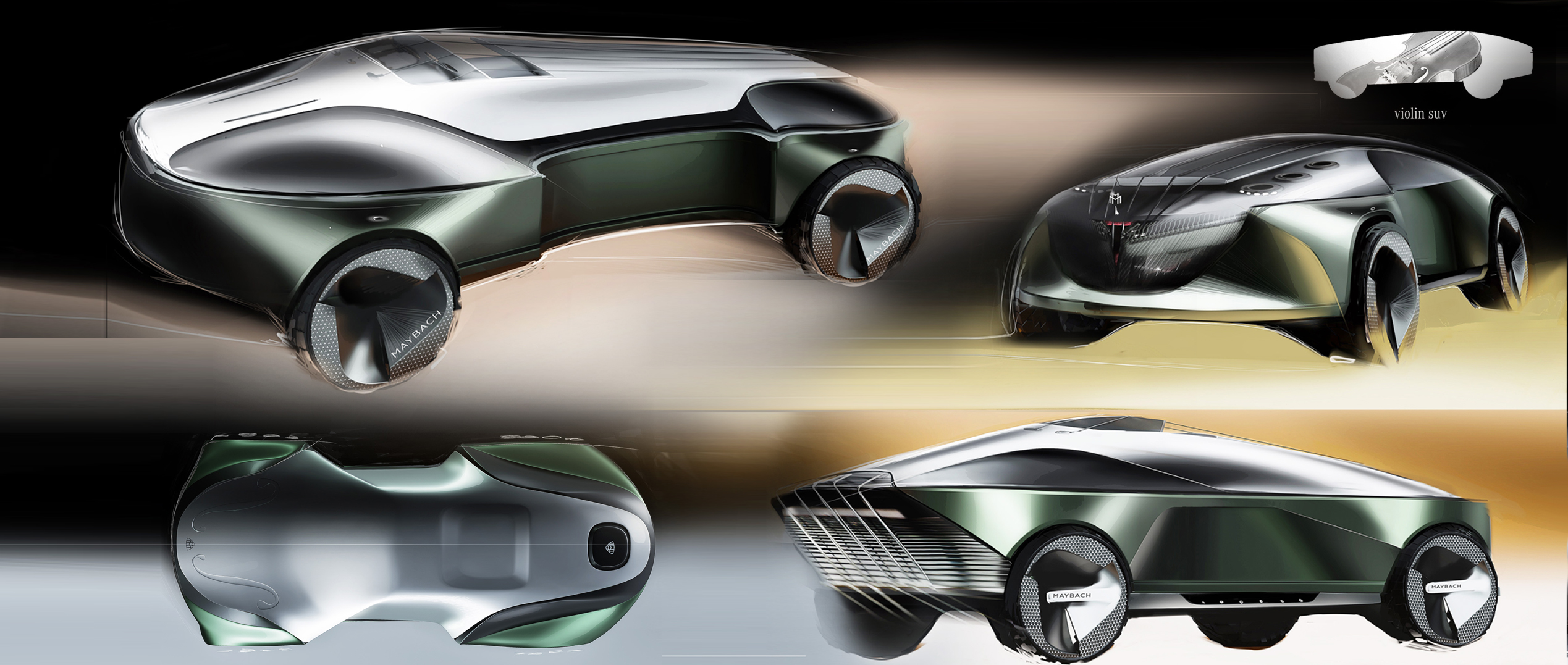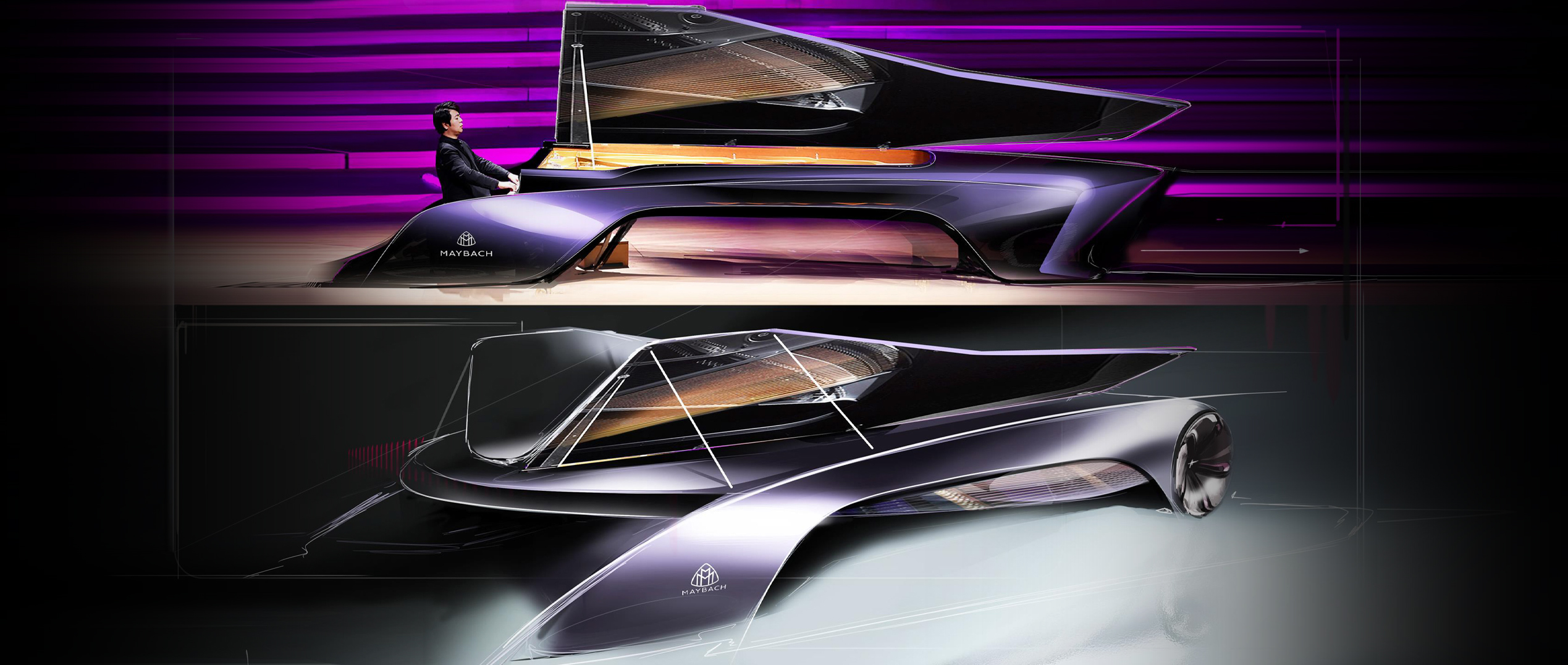 This project explores how classical instruments can be used as a structured inspiration source to create a new Mercedes-Maybach form language. Rather than borrowing shapes literally, I treated instruments as systems of principles—rhythm, tension, resonance, layering, and craftsmanship—and translated those rules into proportion, surfacing flow, and signature detailing.